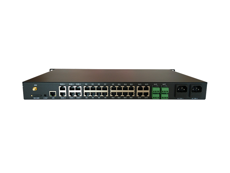 1U机架嵌入式服务器,UCOS-III操作系统,内置WEB Server服务、FTP服务,RS-485通讯接口4路,RS-232通讯接口2路,开关量采集接口16路,开关量输出控制接口8路,SIM卡插槽1个,GSM天线接口1个,语音播报音频输出1路(外接音响,可进行故障和告警信息的播报),彩色显示屏1个,状态指示灯25个,按键4个,双电源输入,内置锂电池(12V10000mAh)供电;